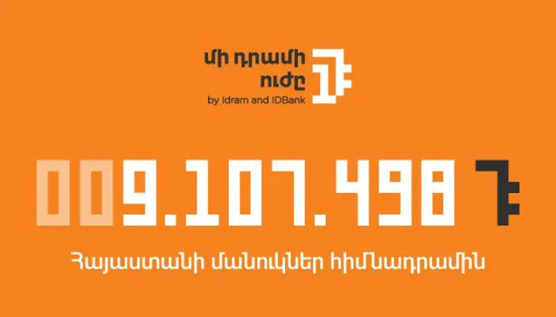 IDBank-ն ու Idram-ը ամփոփեցին «Մի դրամի ուժը» նախաձեռնության հերթական ծրագիրը․ սույն թվականի մայիս և հունիս ամիսների ընթացքում հավաքված «մի դրամների» ողջ գումարը՝ 9․107․498 դրամ, փոխանցվել է «Հայաստանի Մանուկներ» հիմնադրամին։