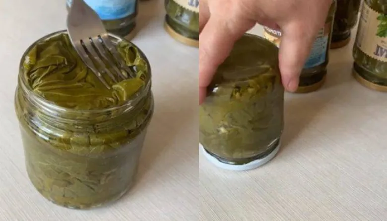 Իսկ եթե ջուրը չի ծածկի տերևներին, ավելացրեք։ Ամուր փակեք, շրջված վիճակում թույլ տվեք սառի և վերջ, կարող եք պահպանել։