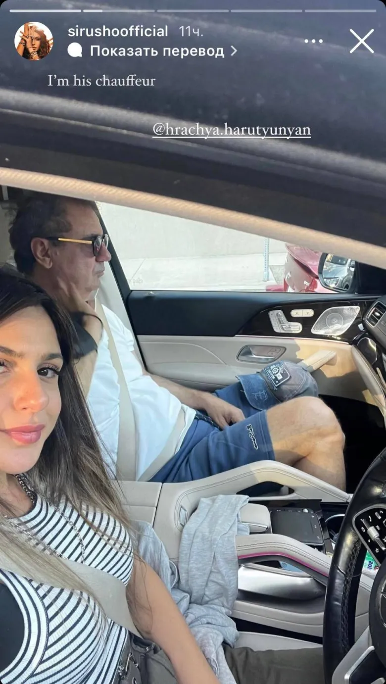 Ինստագրամի իր էջի «Սթորի» բաժնում Սիրուշոն հրապարակել է հոր հետ լուսանկար, որին կից գրել է. «Ես նրա վարորդն եմ»: