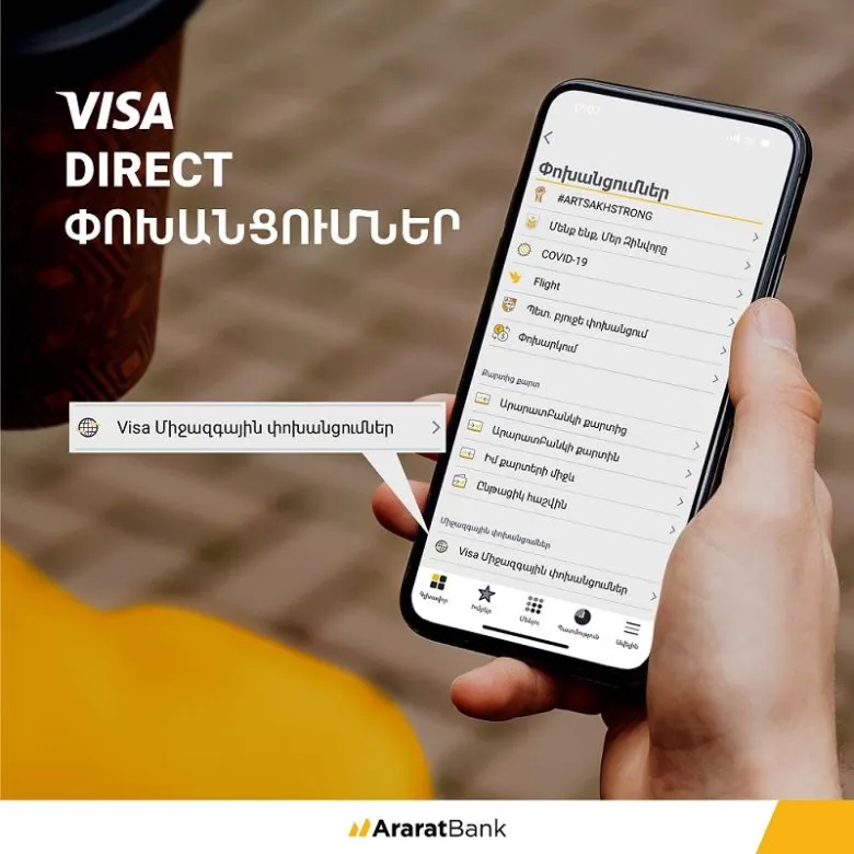 Visa Direct համակարգով փոխանցումներ՝ ԱրարատՄոբայլ հավելվածով
