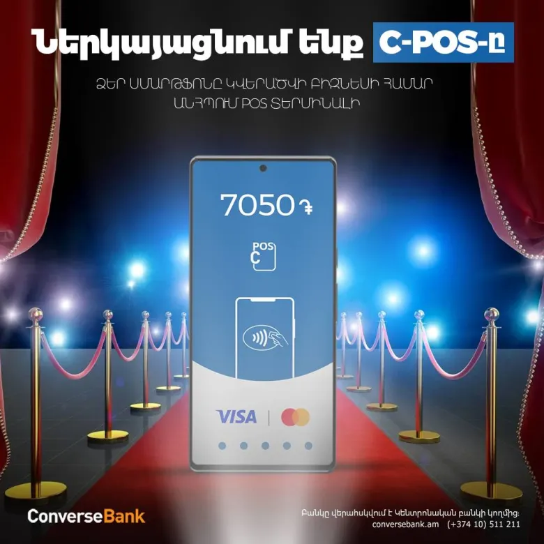 Կոնվերս Բանկը հեշտ ու արագ անհպում վճարումներ ընդունելու հնարավորություն է ընձեռում առևտրի, սպասարկման և ծառայությունների ոլորտի կազմակերպություններին: C-POS բջջային հավելվածը հարմարավետ է սմարթֆոնում կարգաբերումների և օգտագործման տեսանկյունից: Հնարավորություն է տալիս իրականացնելու բոլոր գործարքները, ինչ սովորական POS-երով՝ չպահանջելով հավելյալ ծախսեր սարքերի ձեռքբերման ու սպասարկման համար: