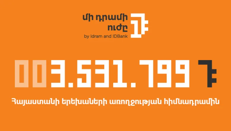 IDBank-ն ու Իդրամն ամփոփել են «Մի դրամի ուժը» նախաձեռնության դեկտեմբեր ամսվա ծրագիրը։ Այսպես, դեկտեմբերին հավաքված գումարը կազմեց 3․531.799 ՀՀ դրամ, որը փոխանցվեց Հայաստանի երեխաների առողջության հիմնադրամին՝ այդպիսով աջակցություն ցուցաբերելով առողջական խնդիրներ ունեցող երեխաներին։