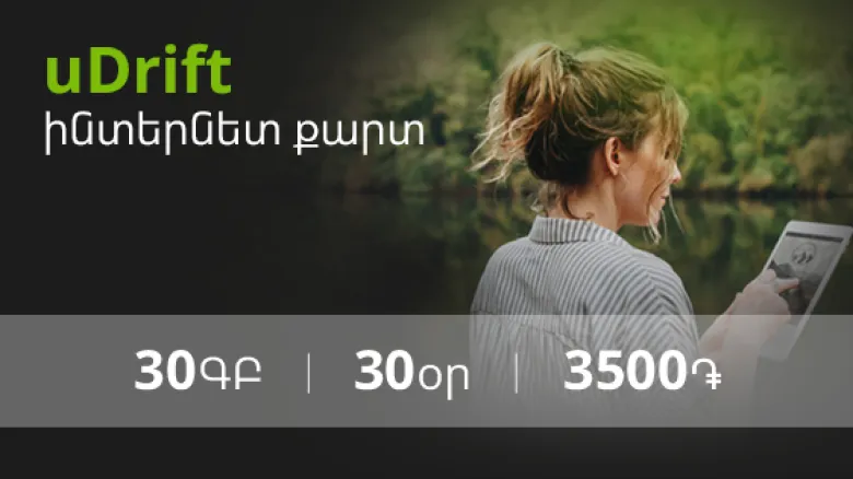Ucom offers joining the new uDrift 3500 prepaid mobile internet tariff plan and receive 30GB of the high-speed internet at just 3500 drams per month.