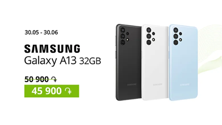 Until June 30 Samsung Galaxy A13 32 GB smartphone can now be acquired from Ucom sales and service centers as well as from Ucom’s online shop at just 45900 drams instead of the previous 50900. It is available in light blue and black colors.