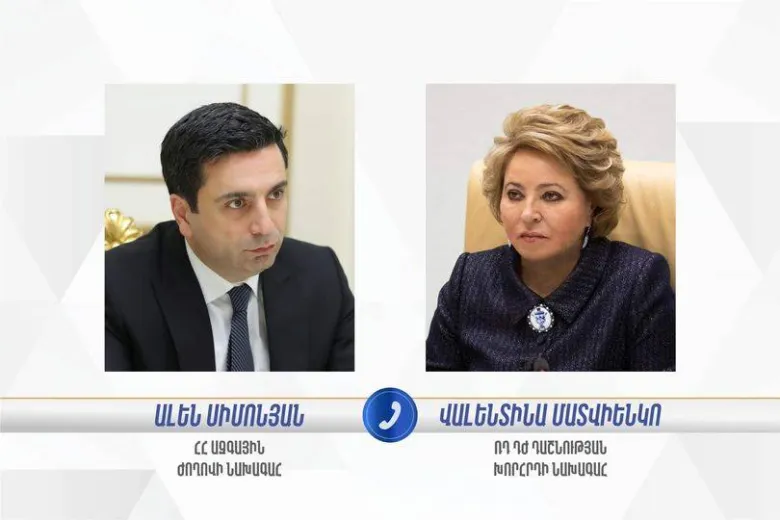 ՀՀ ԱԺ նախագահ Ալեն Սիմոնյանը հեռախոսազրույց է ունեցել ՌԴ ԴԺ Դաշնության խորհրդի նախագահ Վալենտինա Մատվիենկոյի հետ