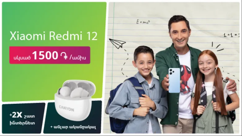Ucom-ն առաջարկում է ձեռք բերել Xiaomi Redmi 12-ն ամսական 1500 դրամով և ստանալ անլար ականջակալ