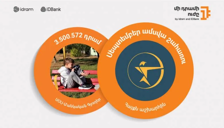 Idram и IDBank также объявили имя бенефициара следующего месяца. Вся сумма «одних драмов», накопленная за сентябрь, будет направлена на образовательную программу «Айк - Миру». Цель программы – дать возможность молодежи Арцаха сначала получить соответствующее образование, а затем, проживая в Арцахе, работать онлайн в международных организациях.