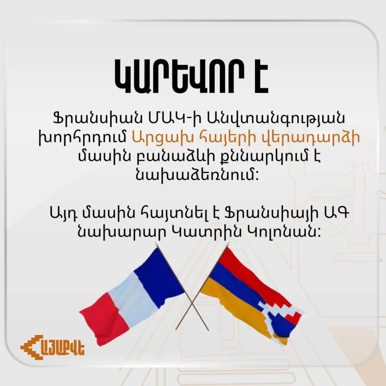 Ֆրանսիան կնախաձեռնի արցախահայերի` հայրենիք վերադարձի շուրջ բանաձևի քննարկում ՄԱԿ-ի ԱԽ-ում