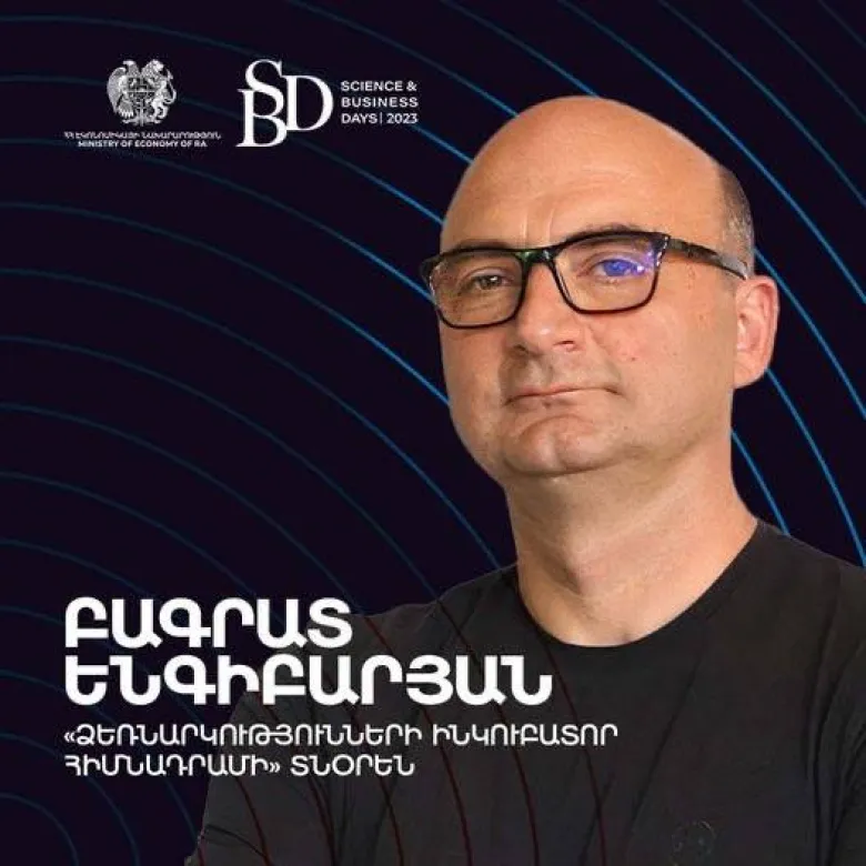 «Ձեռնարկությունների ինկուբատոր հիմնադրամի» տնօրեն Բագրատ Ենգիբարյանը Էկոնոմիկայի նախարարության նախաձեռնությամբ անցկացվող «Գիտության և գործարարության օրեր 2023» ամենամյա համաժողովի բանախոսներից է:
