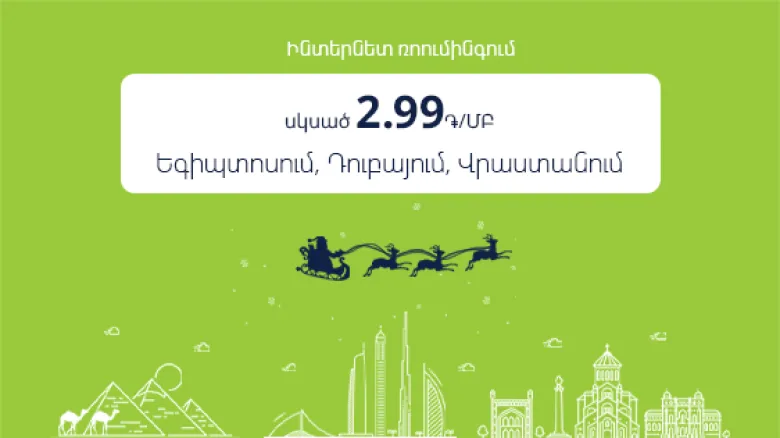 В Ucom начинается период новогодних подарков: всего 5 драмов за 1МБ в роуминге с 01.12.2023 по 31.01.2024