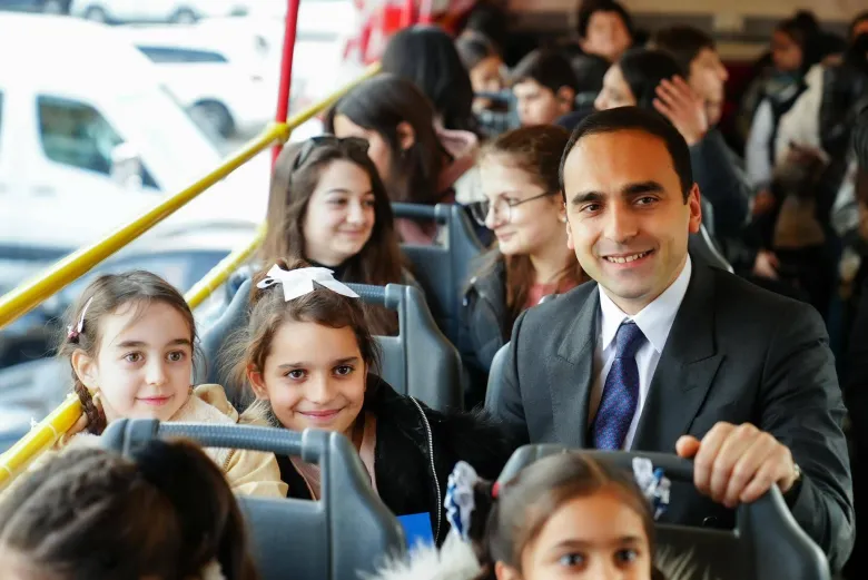 Արցախցի փոքրիկների հետ շրջեցինք ու վայելեցինք Երևանի գեղեցկությունն ու ճարտարապետությունը՝ արդեն քաղաքի զբոսաշրջային խորհրդանիշը դարձած բաց տանիքով երկհարկանի կարմիր ավտոբուսներով: