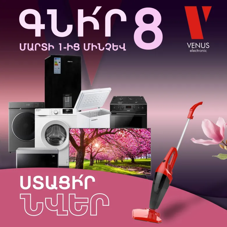 Մայրության և գեղեցկության տոներին ընդառաջ` Վենուս էլեկտրոնիկայի խանութ-սրահը հայտարարում է ՆՎԵՐՆԵՐԻ ՇԱԲԱԹ