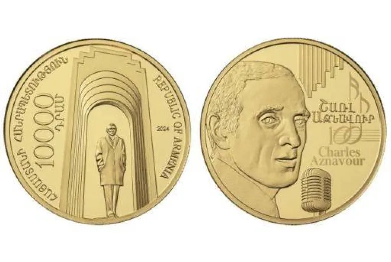 20 мая 2024 года Центральный банк Республики Армения вводит в обращение золотую памятную монету “100-летие со дня рождения Шарля Азнавура”.