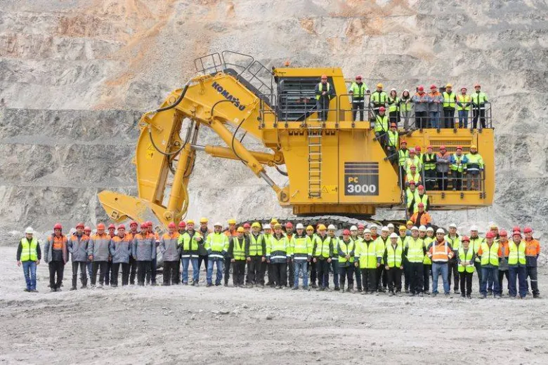 Մեր աշխատակիցները և հսկա Komatsu PC 3000 էքսկավատորը․ համատեղելով ուժերն ու հնարավորությունները: