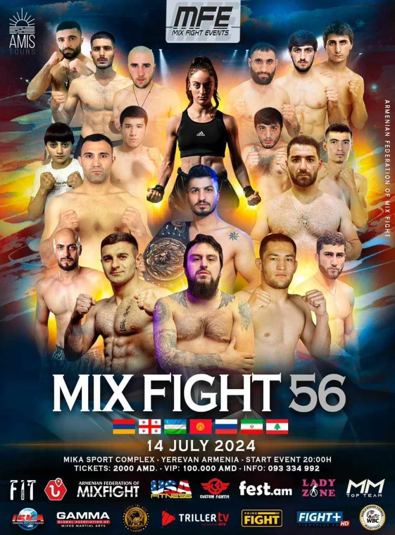 Հուլիսի 12-14-ը իսպանական Mix Fight կազմակերպության 56-րդ մրցաշարը անց է կացվելու Mika մարզական համալիրում: 12-ին և 13-ին լինելու են սիրողական մենամարտերը, իսկ 14-ին պրոֆեսիոնալ 12 մենամարտ: Մրցաշարը միջազգային է, որին մասնակցելու են 7 երկրների ներկայացուցիչներ: Կազմակերպությունը 2019 թվականից մրցաշարեր է անց կացնում Հայաստանում ու յուրաքանչյուր մրցաշարը ավելի բարձր մակարդակով: Մրցաշարը ուղեկցվում է լուսային էֆեկտներով, լեդ էկրաններով, իսկ երաժտությունը ապահովում են հայտնի DJ-ները: Ուղիղ եթերով մրցաշարը հեռարձակվելու է 75 երկրներում: Մրցաշարի նպատակն է մասսայականացնել սպորտը Հայաստանում, թույլ տալ հայ մարզիկներին նախապատրաստվել արտերկրում ելույթների: Mix Fight կազմակերպության շնորհիվ շատ ու շատ մարզիկներ հիմա արդեն մենամարտում են հանրահայտ One, UFC և այլ փրոմոուշեններում: