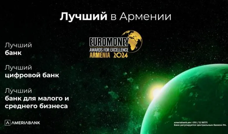 Америабанк удостоился трех наград Euromoney «За превосходство» в 2024 году: «Лучший банк», «Лучший цифровой банк» и «Лучший банк для МСП» в Армении.