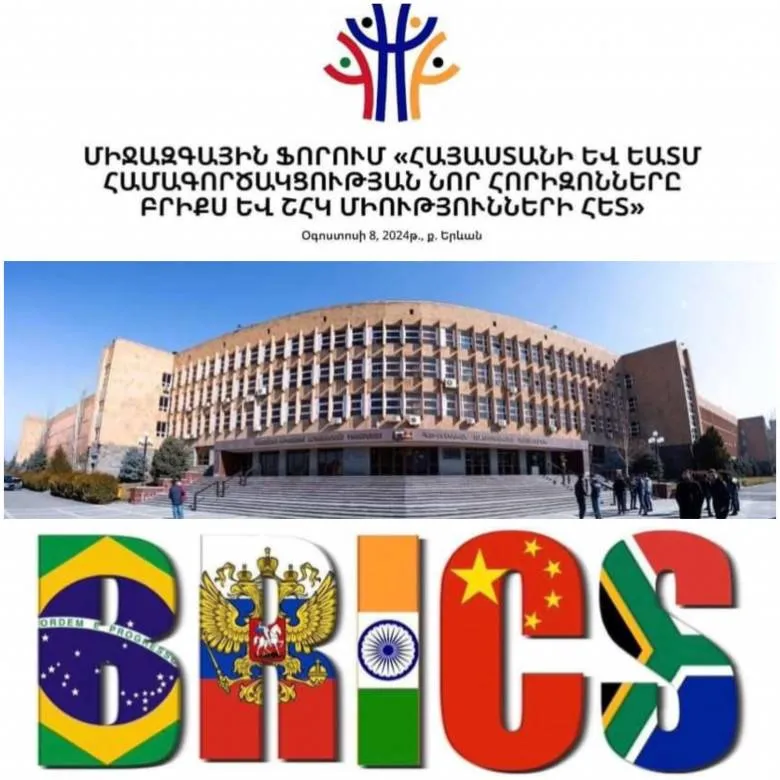Երևանում օգոստոսի 8-ին կայանալու է «ԲՐԻՔՍ-ի և ՇՀԿ-ի հետ ԵԱՏՄ-ի և Հայաստանի համագործակցության նոր հորիզոններ» միջազգային համաժողովը, որին մասնակցելու են միջազգային փորձագետներ աշխարհի ավելի քան 10 երկրներից։