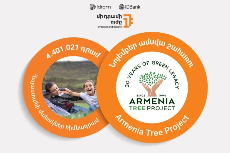 IDBank և Իդրամ ընկերություններից տեղեկացնում են, որ նոյեմբեր ամսվա «Մի դրամի ուժի» ողջ հասույթը կփոխանցվի Armenia Tree Project բարեգործական հիմնադրամի՝ «Տնամերձ տնկարաններ» ծրագրին։ Ծրագրում ներառված է 113 գյուղաբնակ ընտանիք․ նրանք աջակցություն են ստանում տնամերձ հողամասերումտնկանյութ արտադրելու և տնկարաններ ստեղծելու համար։ «Մի դրամի ուժի» ֆինանսավորմամբ այդ տնկարաններում աճեցված տնկանյութը կգնվի և կօգտագործվի անտառապատման նպատակով։