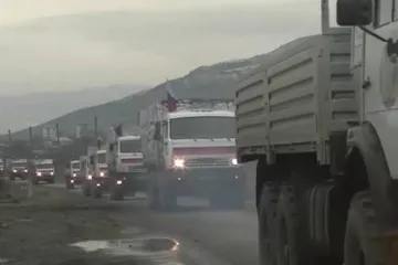 Российские миротворцы сопроводили четвертую колонну со стройматериалами по дорог...