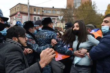 Ոստիկաններն անհամաչափ ուժ են կիրառում աղջիկ ցուցարարի նկատմամբ