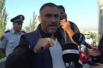 Եռաբլուրում զոհվածի հարազատը բաժակով ջուր է շփել լրագրողի վրա (Տեսանյութ)