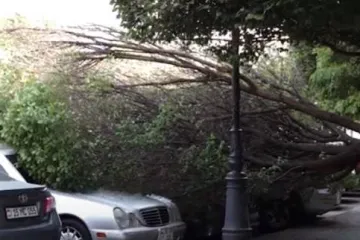 Կառավարության դիմաց ծառ է կոտրվել և ընկել՝ վնասելով տարածքում գտնվող մի քանի մեք...