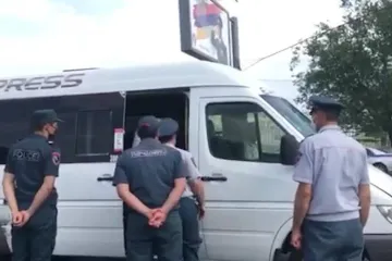 Ոստիկանները Էջմիածին–Երեւան ճանապարհին ստուգում են քաղաքացիների մոտ անձնագրերի ա...
