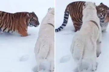 Тигр подбежал к алабаю, пес в ужасе замер… Я и подумать не могла, что их встреча...