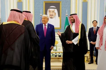 Прибывшего в Катар Трампа встретили фанфарами, верблюдами и красными Cybertruck
