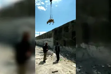Как в Раздане на стройплощадке спасали любопытную корову. Видео дня