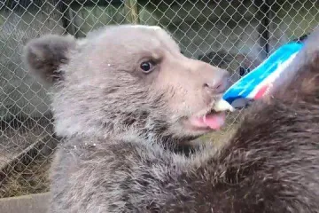 Медвежонка из цирковой семьи выхаживают в приюте (Видео)