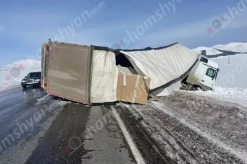 Խոշոր ավտովթար՝ Արագածոտնի մարզում. Վրաստանի քաղաքացին բեռնատարով կողաշրջվել է