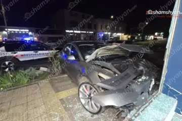 Արտակարգ դեպք՝ Երևանում, «Tesla»-ն բախվել է եզրաքարին, կոտրել «Team Telecom»-ի մ...