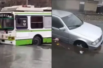 Հորդառատ անձրևից հետո Երևանում մեքենաները հայտնվել են ջրափոսերի մեջ (տեսանյութ)