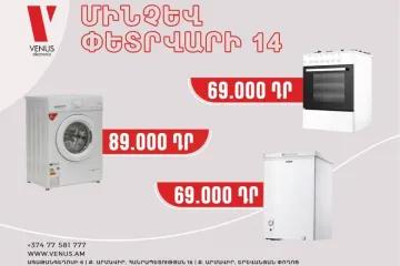 Վենուս խանութ-սրահը տրամադրում է կենցաղային տեխնիկա՝ մեծ զեղչերով