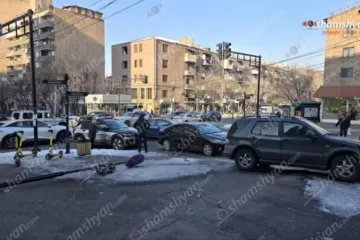 Երևանում մեքենան բախվել է էլեկտրասյանը, ապա ճանապարհի եզրաքարերին․ կա 3 տուժած