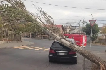 Քամու հետևանքով ծառը շրջվել է կայանած ավտոմեքենայի վրա․ օգնության են հասել փրկար...