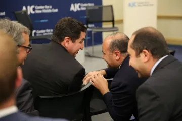 Ձեռքսեղմում՝ Նարեկ Մկրտչյանի ու Հիքմեթ Հաջիևի միջև՝ ԱՄՆ-ում կազմակերպված միջոցառ...