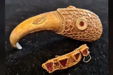 Искатели сокровищ обнаружили в Англии 1400-летнее золотое украшение с рубинами в...