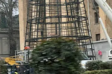 Թբիլիսիի քաղաքապետարանը ցույցերի էպիկենտրոնում սկսել է տոնածառի տեղադրումը