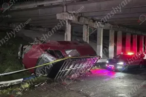 Արմավիրի մարզում «Ford Transit»-ը կամրջից ընկել և հայտնվել է դրա տակ. 2 հոգի տեղափոխվել է հիվանդանոց